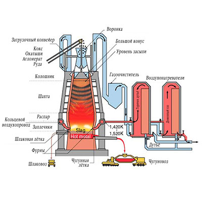 - Высокая производительность: Доменные печи способны производить большие объемы чугуна.