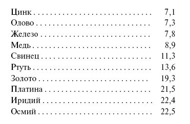 - Платина: около 21.5 г/см³ (тяжелый металл)
