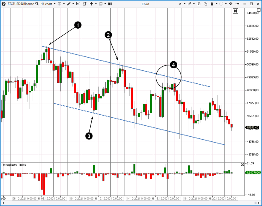 Этот метод использует скользящие средние для сглаживания ценовых данных и определения общего направления тренда. Трендовые линии строятся на основе максимумов и минимумов скользящих средних.